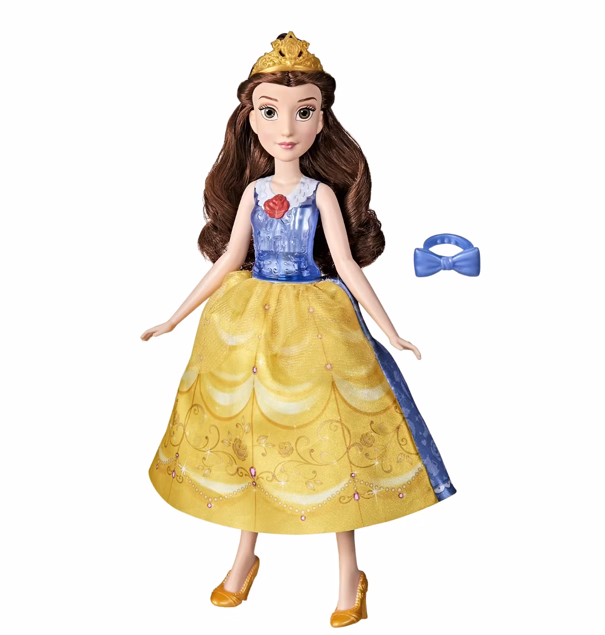 Disney Prinsessan Belle är en karaktär som barnen älskar! Med Spin & Switch Belle kan du trycka ihop benen på den här Disneyleksaken så snurrar hennes kjol runt och en magisk ljudeffekt hörs. Hon bär den klassiska gula balklänningen! Det finns även en tiara och en rosett som kompletterar respektive look. Spin and Switch Belle är ca 27 cm hög och är en perfekt present till barn och barnbarn från 3 år. Och även ett perfekt tillskottet i din samling med Disneyprinsessor.