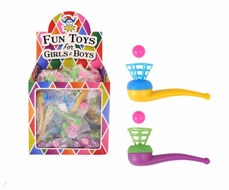 En klassisk leksak som går ut på att blåsa i pipan och balansera bollen i luften.