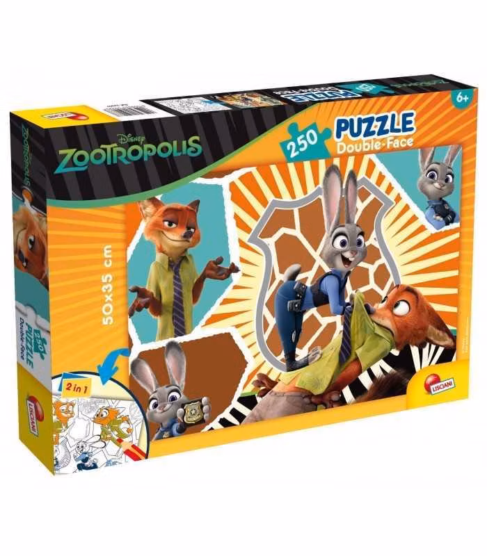 2 i 1 pussel av disneys tecknade Zootropolis, det består av 250 pusselbitar, du kan också färglägga pusselbitarna och ha dubbelt så roligt med dina favoritkaraktärer. Förpackningen mått ca: 34,5 x 24,5 cm
