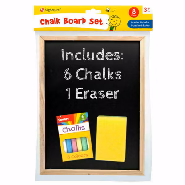 Griffeltavla med 6st kritor i olika färger & 1 svamp.