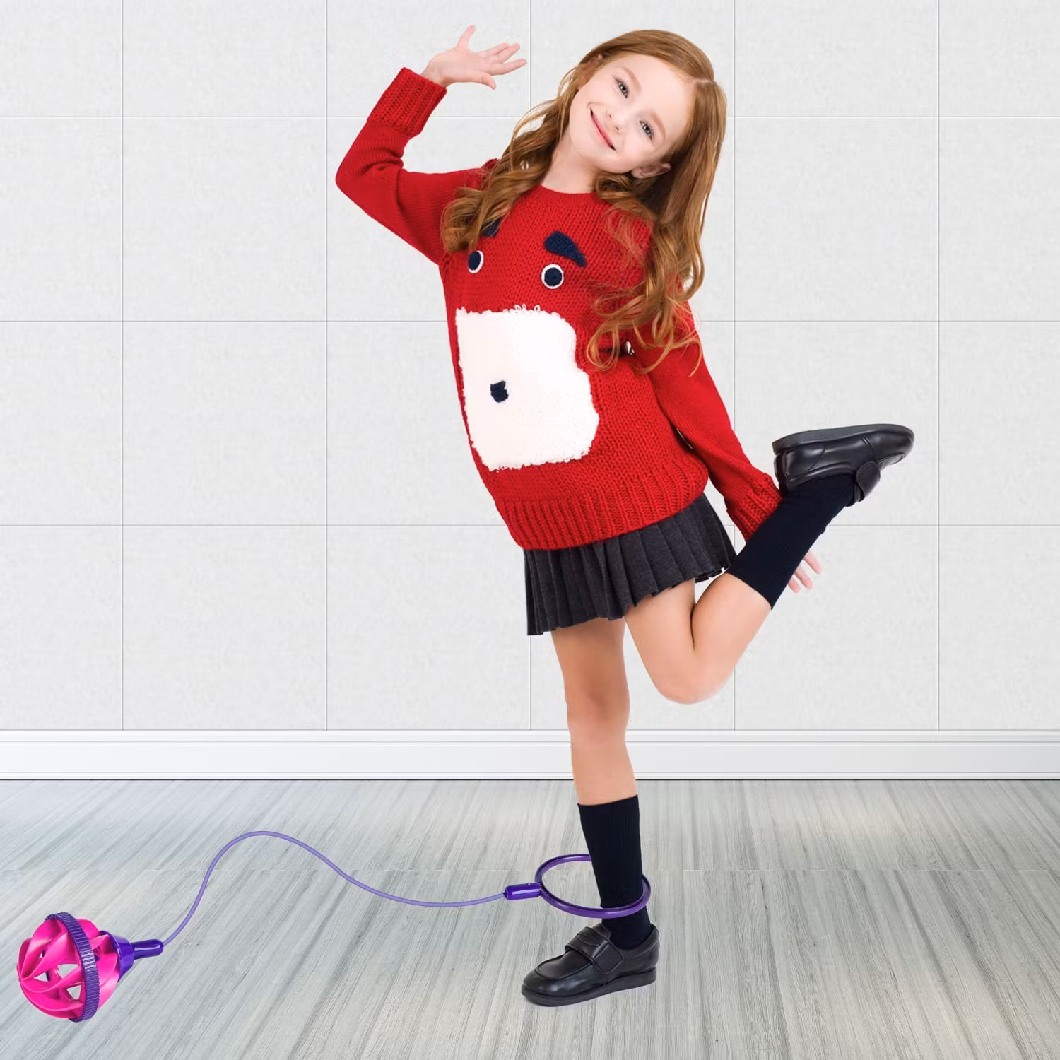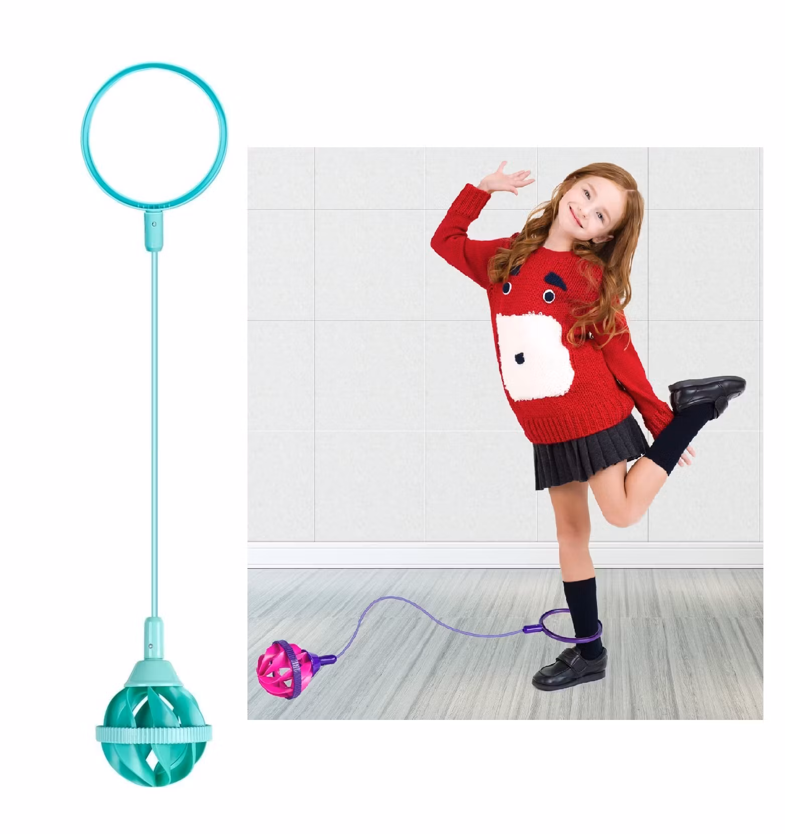 Den sätts runt ena foten medans man med den andra foten hoppar över bollen som är fäst i linan. Mycket bra träning och aktivering för barn.