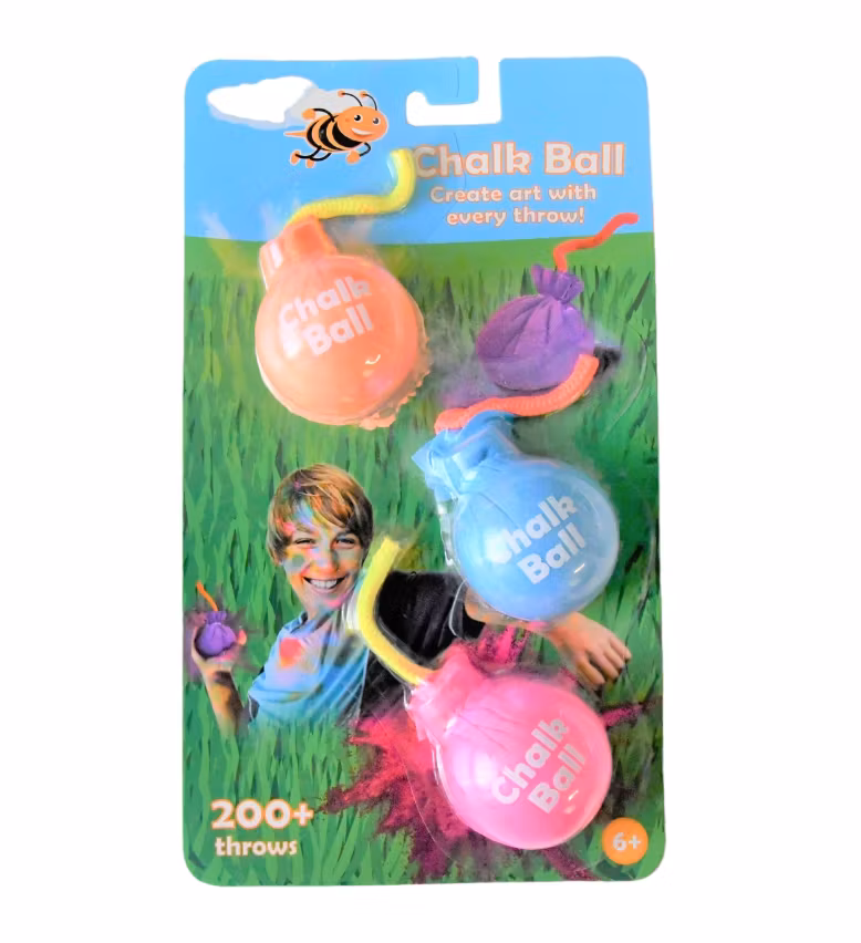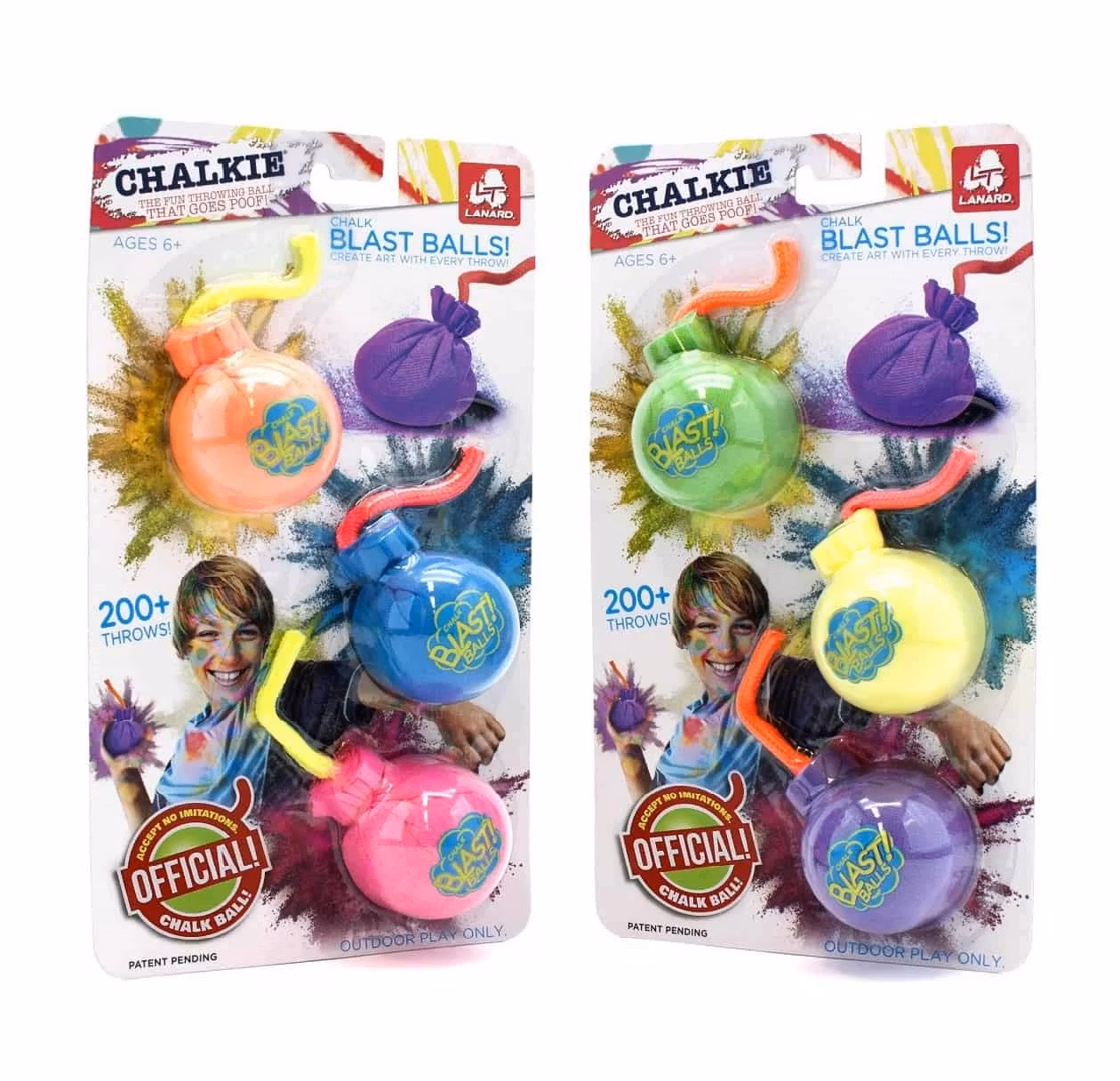 1 styck förpackning med 3 st kalkbomber, mjuka bollar med kalk i olika färger.