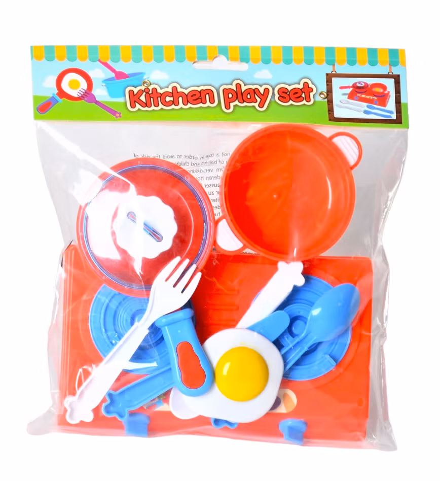 Spisplattor, gryta, stekpanna, ägg och bestick.