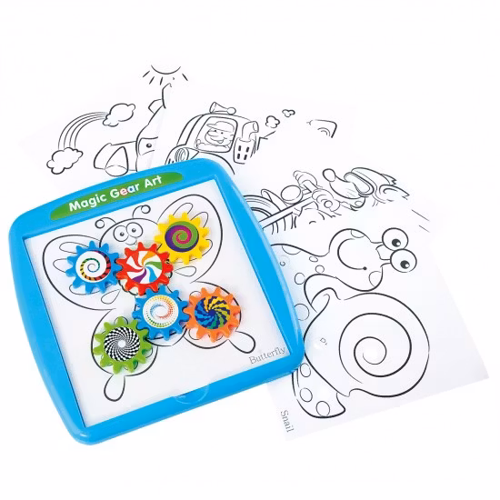 Prova Playgo Magic Gear-konst. Med detta set så kan man färglägga alla ritningar och sätta kugghjulen på plats och se sen ditt konstverk komma till liv genom att snurra hjulen. Kreativt och roligt för barn från 3 år.