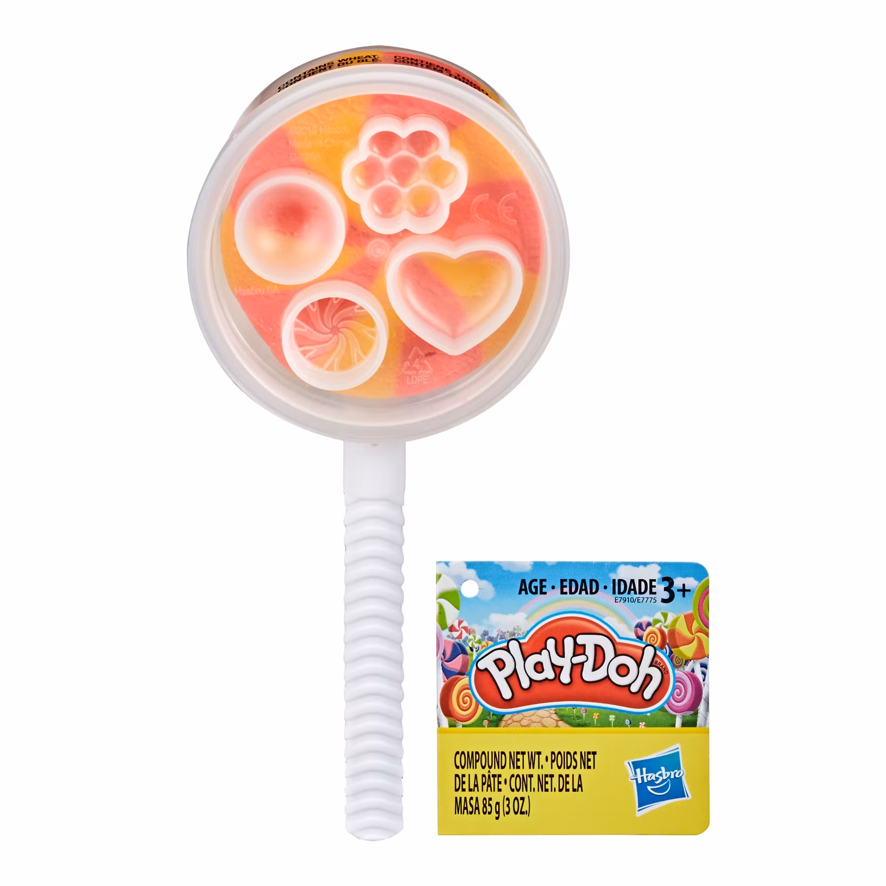 Play-doh lera i förpackning som ser ut som festlig klubba. Pinnen har mönster och kan tas loss från toppen och användas som kavelrulle för att få roliga mönster på degen. Degburken på toppen passar bra att förvara leran i när den inte används och den har dessutom små urholkningar som du kan använda som degformar. Leran är tvåfärgad.