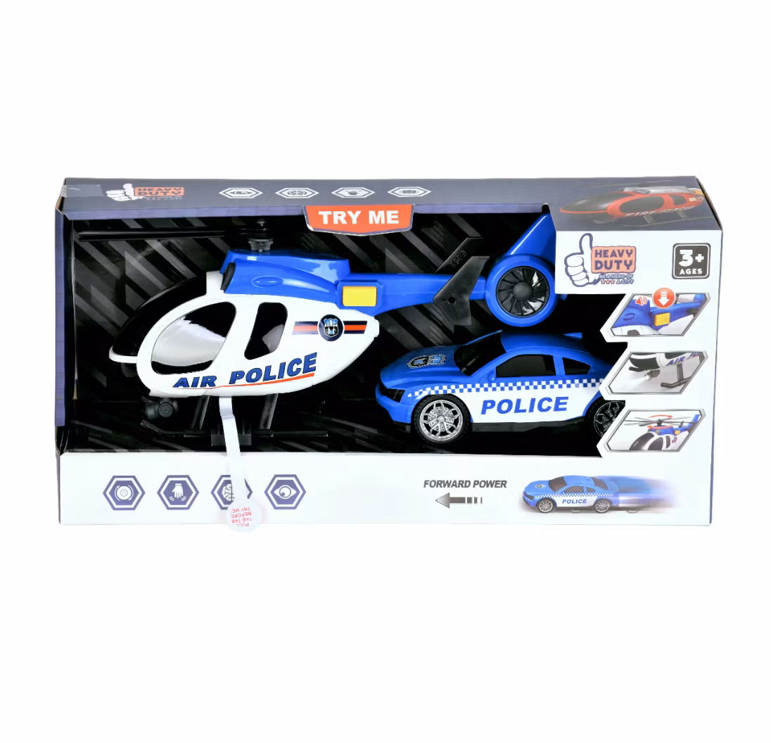 Många barn drömmer att bli polis, spana efter brottslingar eller vara med på olika räddningsuppdrag. Med detta polis set kan barnet drömma sig bort och leka hjälte. För det är just vad våra poliser är dem är där när vi som mest behöver dom. Helikopter ger i från sig ljud och lampan under den lyser.