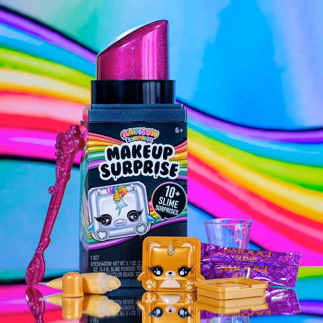 Med Poopsie Makeup Surprise kan du nu göra slime med make-up i! Alla saker som ingår gör, att du kan göra ditt eget helt unika slime och även transformera det om och om igen. Du kan göra genomskinligt slime och sedan färga det med det medföljande make-up (ögonskugga eller läppstift). Du kan använad make-upen både på sig själv och på ditt slime.