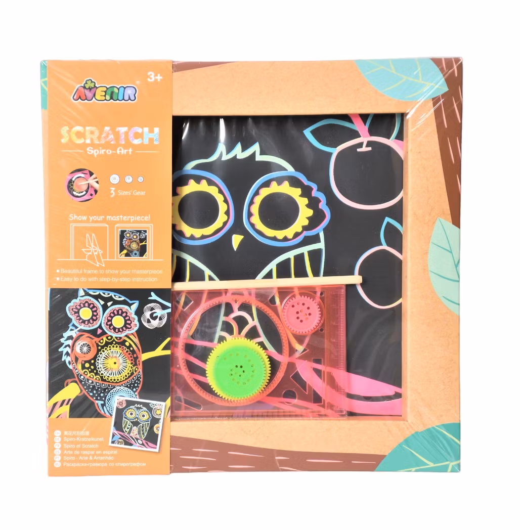 Skrapa det speciella svarta papperet för få mönster på ugglan.