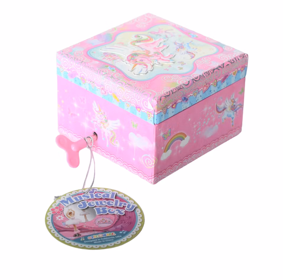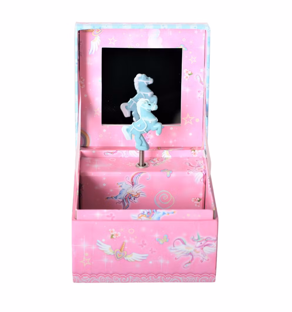 Sött smyckeskrin med unicorn motiv, vrid nyckel och enhörningen i skrinet dansar och en melodi spelas. I det lilla skrinet kan du spara alla dina finaste smycken, saker eller andra hemligheter.
