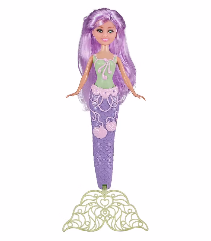 Sjöjungfrun kommer med en magisk grön sjöjungfrusvans som förvandlas till en bubbeltrollstav! Hennes hår är långt lila och mjukt som går att göra massor av frisyrer på. Vad är ett sjöjungfruäventyr utan bubblor? Doppa svansen i bubbellösningen och se hennes svans skapa fantastiska superglänsande bubblor. Blås försiktigt genom hennes svans för att se bubblorna dyka upp.