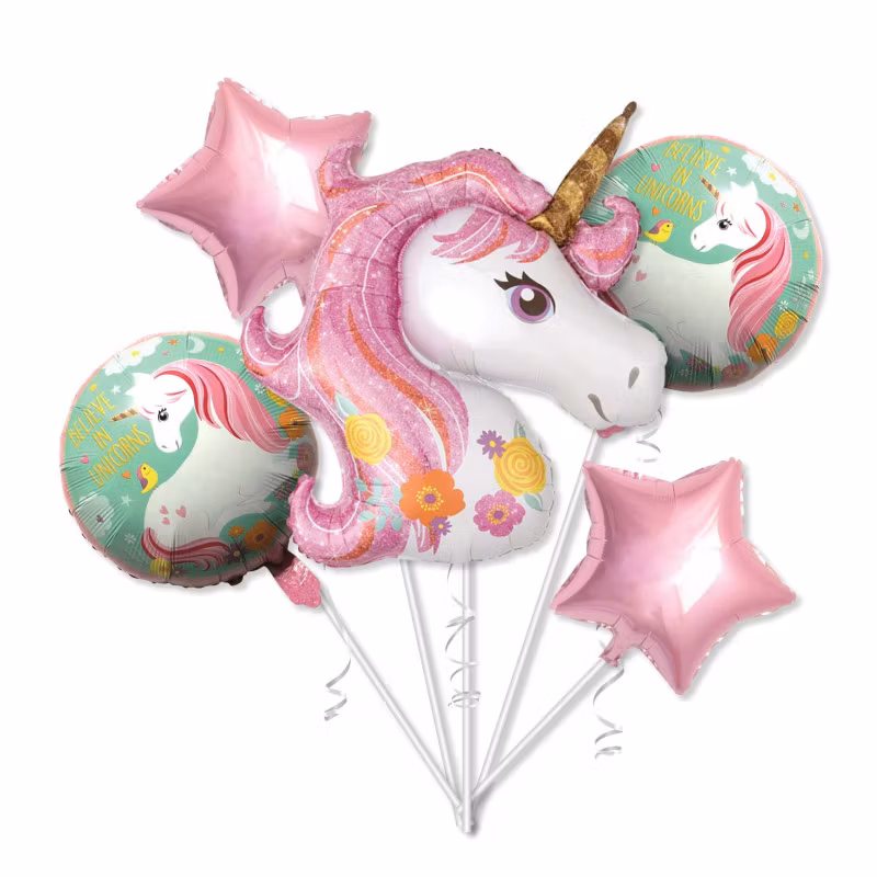 Detta folieballong kit är ett måste på alla unicornkalas! Ballongerna fylls med antingen luft eller helium (ingår ej). Häng upp ballongerna eller knyt fast i band med en tyngd.